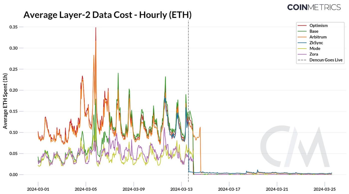 Với việc hoàn thành thành công hard-fork Dencun " vào ngày 13 tháng 3 , Ethereum đã đạt được một cột mốc quan trọng khác trong lộ trình của mình, đó là trải qua một đợt nâng cấp cơ sở hạ tầng lớn để nâng cao khả năng mở rộng của chuỗi khối. Sự kiện này không chỉ được dự đoán bởi người dùng Ethereum, những người đã phải vật lộn với phí giao dịch cao trong thời gian tắc nghẽn, mà còn bởi các giải pháp lớp 2 (L2) phải đối mặt với chi phí tăng cao liên quan đến việc lưu trữ hoặc giải quyết dữ liệu đã được xử lý Ngoài chuỗi, cho đến lớp 1 của Ethereum. của “blobs” thông qua Đề xuất cải tiến Ethereum (EIP)-4844, đã giảm bớt những tắc nghẽn này, đặt nền tảng để cải thiện tính khả thi về mặt kinh tế của mạng cho tất cả các bên liên quan.