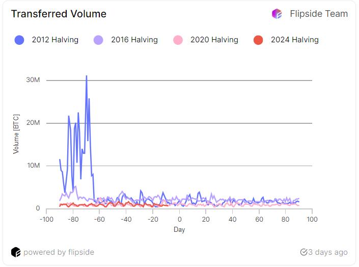 Và mặc dù năm 2024 cũng ghi nhận dòng BTC chảy vào trong một ngày cao nhất so với bất kỳ đợt halving nào, điều này có thể chỉ đơn giản cho thấy hành vi thị trường có nhiều sắc thái hơn khi những người tham gia thị trường phân chia giữa nắm giữ và giao dịch.