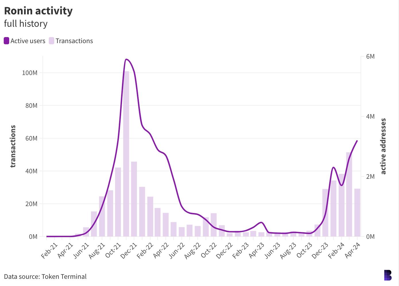 Tuy nhiên, Ronin đang tập hợp nền kinh tế on-chain của riêng mình. Mạng dường như đã phục hồi phần lớn kể từ cuộc đột kích trị giá 625 triệu đô la vào cây cầu Token của nó vào đầu năm 2022. Các tin tặc có liên quan đến Triều Tiên đã đánh cắp tài sản kỹ thuật số hỗ trợ mã thông báo cầu nối trên Ronin, phá hoại nền kinh tế trong trò chơi — đặc biệt là của Axie Infinity — và vụ việc không được chú ý trong sáu ngày.