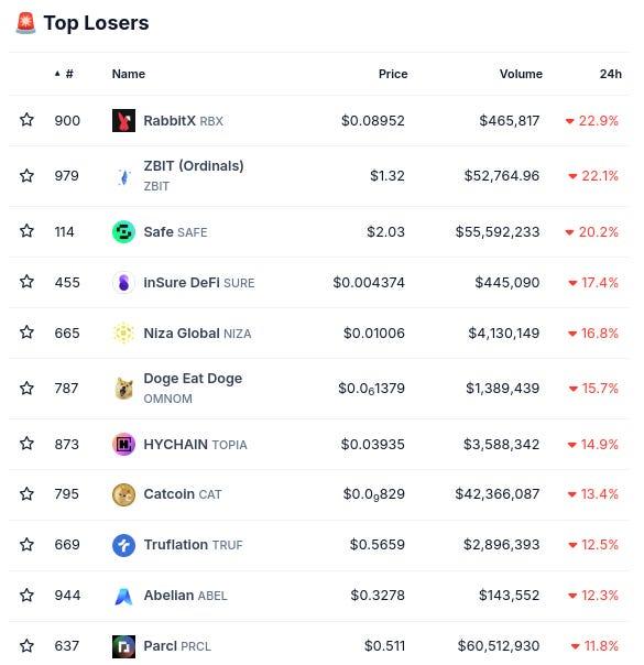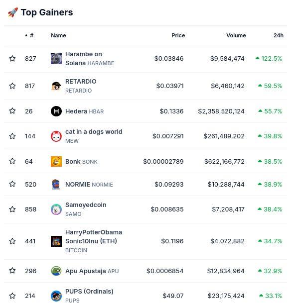 (Từ @coingecko top 1000, thay đổi sau 24 giờ)