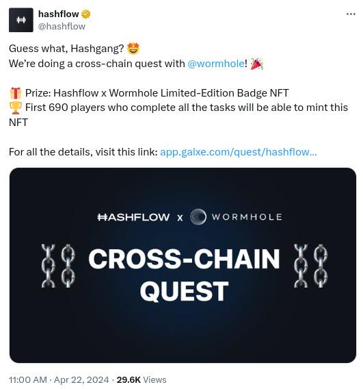 Hãy lưu ý nhé các bạn… nhóm @ Hashflow đang thực hiện nhiệm vụ Galxe chuỗi chéo với @wormhole!