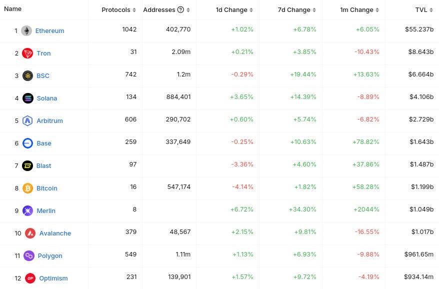 Đây là 12 chuỗi hàng đầu theo Tổng giá trị khóa (TVL) (từ @ DefiLlama) :