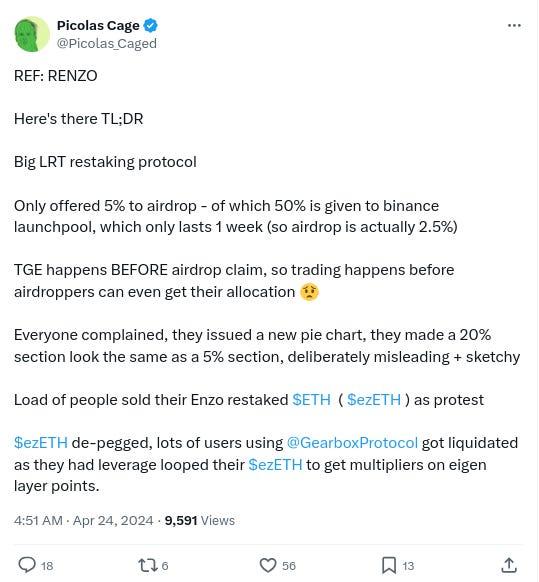 -Chủ đề hay phân tích tình hình Renzo từ @0xtommy_eth: