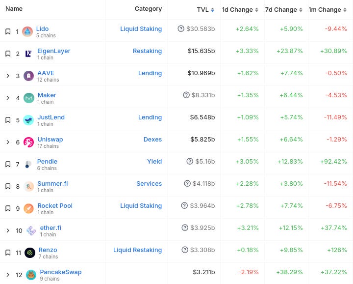 Đây là 12 giao thức hàng đầu của Tổng giá trị khóa (TVL) (từ @ DefiLlama) :
