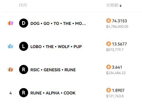 Vậy phí mạng thấp có thể mang lại việc sử dụng RuneChain trên quy mô lớn không? Đánh giá từ dữ liệu hiển thị chính thức , khối lượng giao dịch trong 24 giờ của RUNIX, có khối lượng giao dịch cao nhất trên RuneChain, cao tới 153,89 BTC và rune DOG phổ biến nhất trên mạng chính hiện tại cũng cao tới 4,19 BTC.