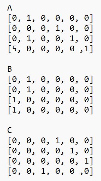 a = [0, 1, 0, 0, 1, 0] : chỉ định “x” và “y”