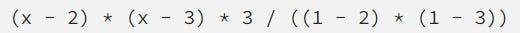 Ví dụ: Giả sử chúng ta muốn một đa thức đi qua (1, 3), (2, 2) và (3, 4). Chúng ta bắt đầu bằng cách tạo một đa thức đi qua (1, 3), (2, 0) và (3, 0).
