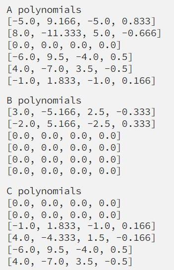 Sau đó, chúng ta làm tương tự với hai điểm còn lại và nhận được hai đa thức khác, cộng cả ba lại với nhau và nhận được: