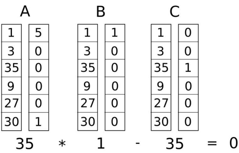 Điều này kiểm tra xem giá trị đầu ra có đúng là sản phẩm của hai giá trị đầu vào hay không. Nếu tất cả điều kiện này đều được thoả mãn, chúng ta có một vectơ giải pháp chính xác cho hệ thống.