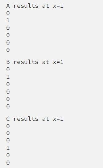 - Đa thức C khi đánh giá tại x = 1 cho tất cả các kết quả là 0, ngoại trừ kết quả thứ tư là 1.