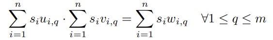 Những ràng buộc ở trên thuộc một tập hợp m các ràng buộc rank-1, có mục đích mô phỏng mối quan hệ giữa đầu vào và đầu ra của cổng nhân trong một mạch số học