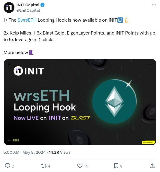 Hãy lưu ý thoái hóa tốt! $wrsETH Looping Hook hiện có sẵn trên @InitCapital_ !