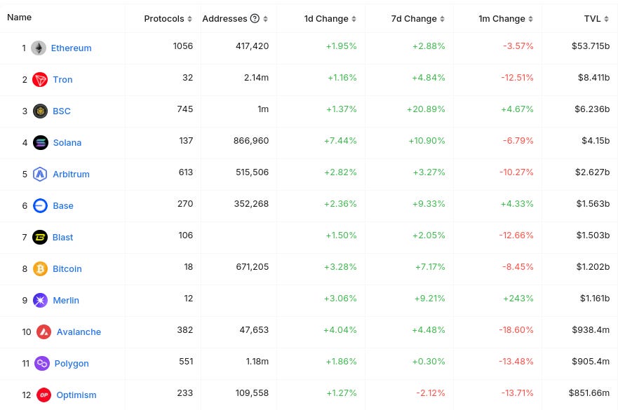 Đây là 12 chuỗi hàng đầu theo Tổng giá trị khóa (TVL) (từ @ DefiLlama) :