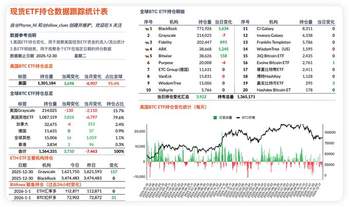 Vào ngày làm việc áp chót trước Tết Dương lịch, cũng là ngày công bố đầy đủ dữ liệu ETF spot cuối cùng dữ liệu năm mới, đã có sự cải thiện nhẹ, với dấu hiệu một số nhà đầu tư mua vào, chủ yếu là các nhà đầu tư của BlackRock và ARK. Không rõ liệu điều này là do cuối năm và họ đã nhận được tiền thưởng và bắt đầu đầu tư hay không, nhưng mức độ mua vào này có tác động rất thấp đến giá spot. twitter.com/Phyrex_Ni/status/2...