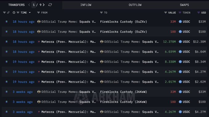 🚨NHÓM CỦA TRUMP CHUYỂN 33 TRIỆU USDC LÊN ICOBASE Nhóm meme TRUMP đã chuyển thêm 33 triệu USDC từ nguồn thanh khoản sang Coinbase, nâng tổng lượng tiền chảy ra lên 94 triệu USD trong 30 ngày theo số liệu của LookOnChain.