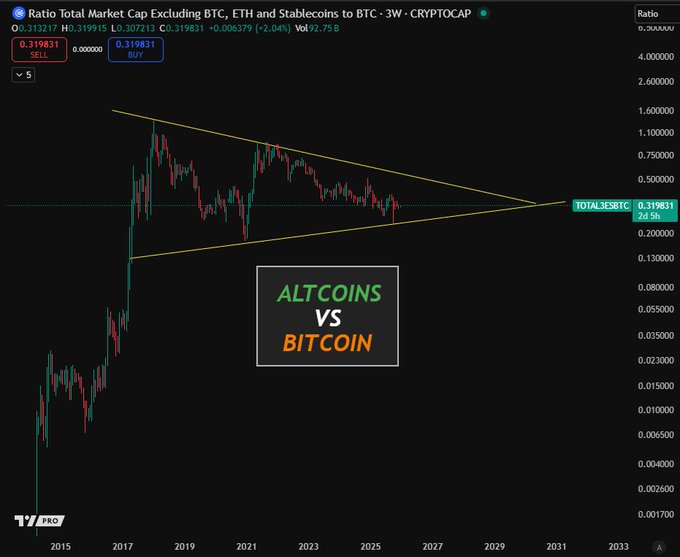 Trên thực tế, thị trường Altcoin và Bitcoin đã trải qua giai đoạn củng cố trong suốt 8 năm qua.