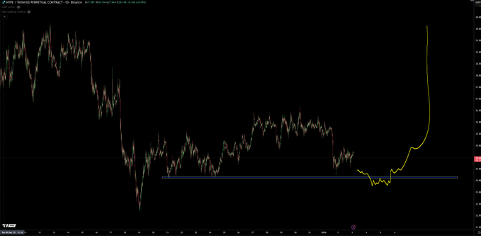Tôi nghĩ họ sẽ chạy vòng quanh khu vực thấp thêm một lần nữa trước khi phá bỏ nó. $HYPE twitter.com/trader1sz/status/2...