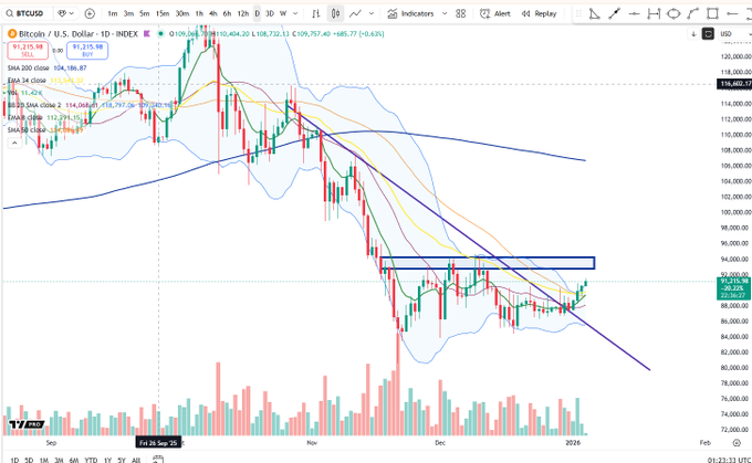 $BTC Có chút năng lượng nhưng vẫn trong phạm vi cắt, tín hiệu kích hoạt cục bộ rõ ràng ở trên tại 94.5k trên bộ lọc 2 cấp Lưu ý rằng các đường MA nằm ngang nên bất kỳ sự giao nhau nào cũng bị tắt tiếng twitter.com/BigCheds/status/20...