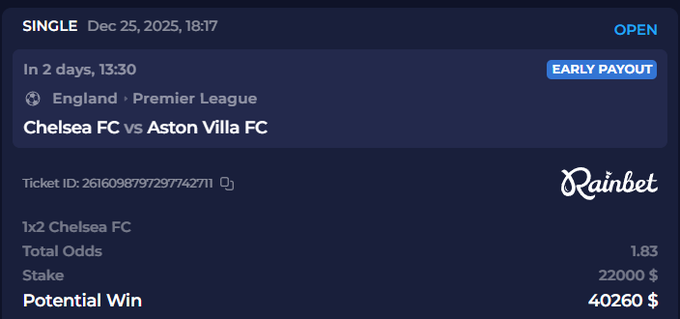 Đội bóng lớn nhất London đối đầu với Villa. Trận đấu căng thẳng nhưng dự kiến đội chủ nhà sẽ giành chiến thắng sít sao tại Stamford Bridge.