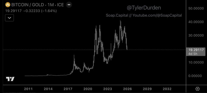 BTCXAU // Hàng tháng Hiện tại, thị trường gấu Bitcoin đang tiến đến giai đoạn cuối.