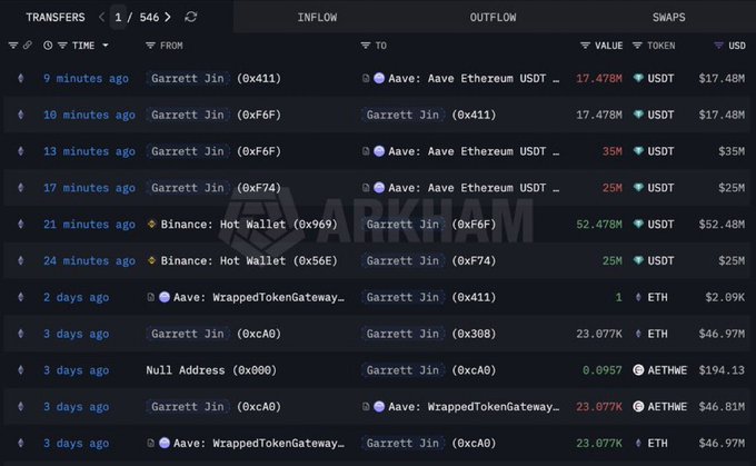 🕵️ Garrett Jin vừa rút 77,48 triệu $USDT từ Binance và trả hết khoản vay trên AAVE.