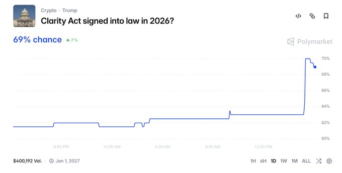 Nghe tin vui...nhưng mọi sự chú ý đều đổ dồn vào @Polymarket để chờ tín hiệu mạnh nhất. Có 69% khả năng Đạo luật Minh bạch sẽ được ký kết vào năm 2026. twitter.com/RyanSAdams/status/...