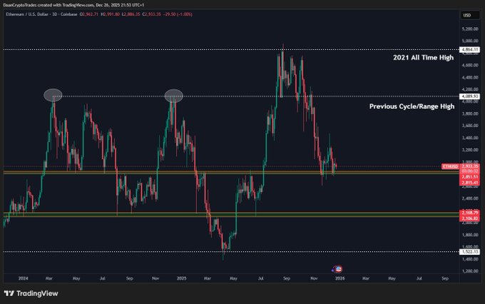 $ETH Quay trở lại mức hỗ trợ cao nhất trong chu kỳ này. Mức 2.800 đô la là mức cần theo dõi trong những tuần tới.