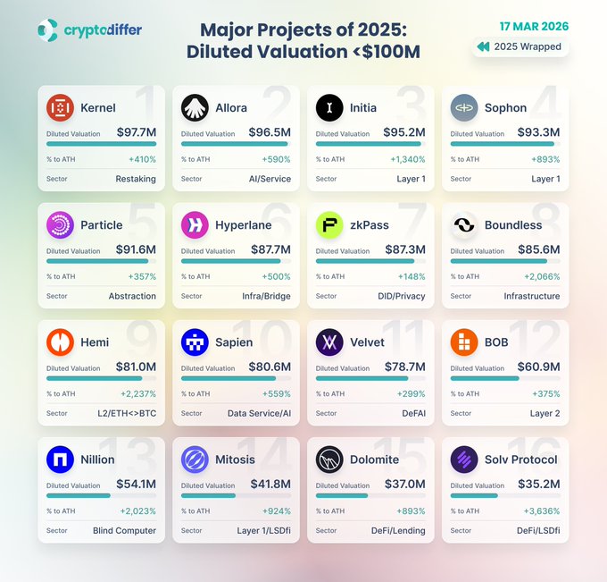 Các dự án lớn năm 2025: Định giá pha loãng dưới 100 triệu đô la Năm 2025 chứng kiến một làn sóng ra mắt mạnh mẽ, nhưng nhiều loại tiền điện tử này đang được giao dịch dưới mức định giá pha loãng 100 triệu đô la. Khi xu hướng thị trường thay đổi, những tài sản này có thể nằm trong số những tài sản có biến động lớn nhất.