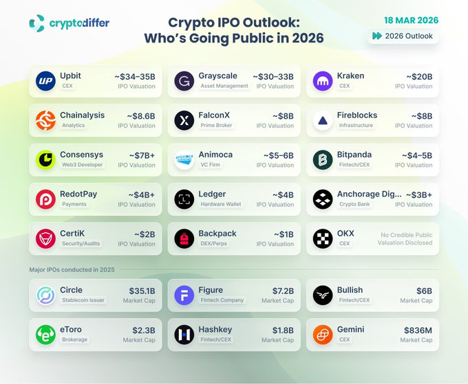 Triển vọng IPO tiền điện tử: Ai sẽ niêm yết công khai vào năm 2026? Một làn sóng mới các công ty #crypto đang chuẩn bị cho thị trường chứng khoán công khai khi hoạt động #IPO bùng nổ. Các sàn giao dịch, nhà cung cấp cơ sở hạ tầng và các công ty fintech đang định vị để tận dụng điều kiện thị trường.