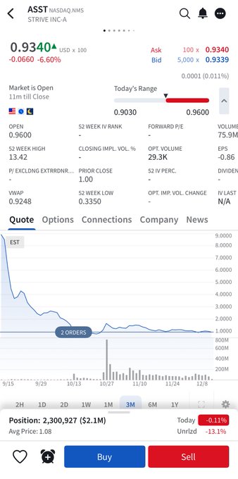 Tôi vừa mua thêm 50.000 cổ phiếu ASST với giá 0,927 đô la. Hiện tại tôi đang nắm giữ hơn 2,3 triệu cổ phiếu. Khả năng tập trung của tôi còn tốt hơn cả một nhà phân tích trẻ tuổi. Hẹn gặp lại các bạn khi Bitcoin đạt trên 200.000 đô la.