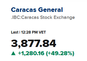 Thị trường chứng khoán Venezuela hiện đã tăng hơn 50% chỉ trong một ngày. Thị trường đang phản ánh sự cải cách kinh tế lớn. twitter.com/TKL_Adam/status/20...