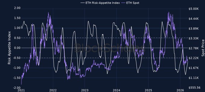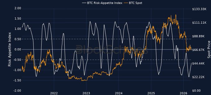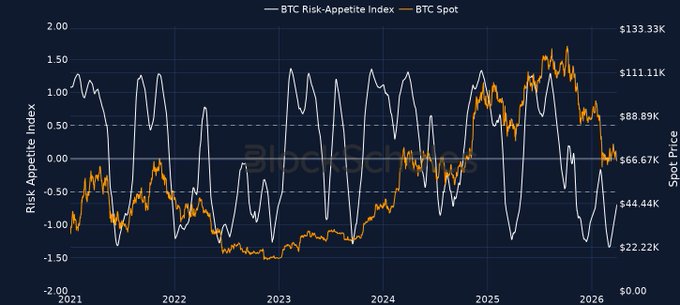 ✳️ Chỉ số khẩu vị rủi ro Block Scholes – 31/03/2026 📈 Cả BTC và ETH hiện đều đã vượt qua Threshold -0.7 và đang tiếp tục tăng lên hướng tới -0.6. Được hỗ trợ bởi @BlockScholesBot: t.me/BlockScholesBot
