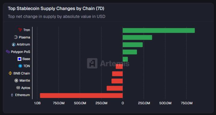 [Dòng chảy ổn định] Stablecoin đang đổ xô vào thanh toán và Tron… Tăng ròng 570 triệu đô la trong thanh toán và 850 triệu đô la trong Tron trong 7 ngày