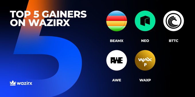 5 cổ phiếu tăng giá mạnh nhất trên WazirX hôm nay: 🚀 $BEAMX: +32,43% 🚀 $ Neo: +7,53% 🚀 $BTC: +6,06% 🚀 $AWE: +5,87% 🚀 $WAXP: +5,26%