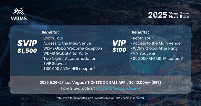Đừng bỏ lỡ phiên họp này — đã đến lúc định hình tương lai của Đào coin Bitcoin. Hẹn gặp lại các bạn tại Las Vegas vào ngày 26–27 tháng 5 năm 2025! Giữ chỗ cho bạn 👉 http:/bitmain.com/wdms #WDMS2025 #HiệuQuảThủyLực #BITMAIN twitter.com/BITMAINtech/status...