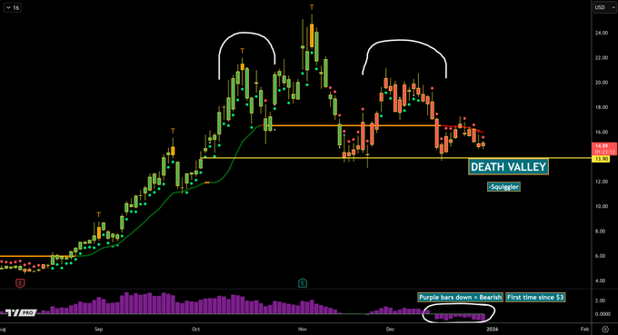$CIFR Các nhà đầu tư giá trị dường như cho rằng đây là một biểu đồ tốt. Những người theo trường phái giao dịch nhanh lại nói khác. Mô hình vai đầu vai với đáy thấp hơn và thanh khoản toàn cầu đang giảm. Kháng cự và lệnh bán chồng chất ở mọi mức trên. Xác suất cho thấy giá thấp hơn nhiều.
