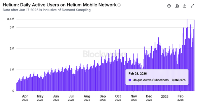 3,4 triệu người đã sử dụng mạng @helium ngày hôm qua và góp phần vào việc đốt cháy $HNT twitter.com/AustinBarack/statu...