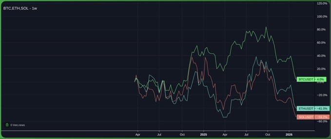Trong khoảng 2 năm trở lại đây, BTC vẫn giữ nguyên ở mức 70.000 đô la. Trong khi đó , ETH và SOL giảm lần lượt 50% và 57%. Thiên nhiên đang chữa lành.