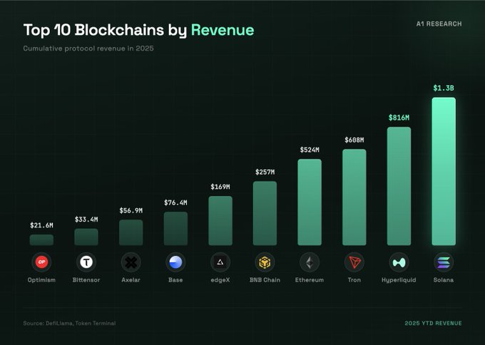 Hyperliquid với 816 triệu đô la là một ví dụ nổi bật. Một Sàn phi tập trung (DEX) vĩnh viễn tạo ra doanh thu nhiều hơn Ethereum (524 triệu đô la), TRON (608 triệu đô la) và hầu hết mọi sàn L2. Không nhận được vốn đầu tư mạo hiểm, không có Token cho đến cuối năm 2024, và hiện đã đứng ở vị trí thứ hai.