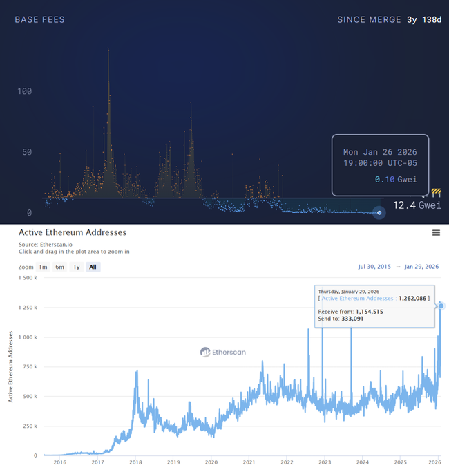Phí Gas ETH đang ở mức thấp kỷ lục trong khi số lượng địa chỉ ETH hoạt động tăng vọt hướng tới mức cao nhất mọi thời đại. Điều gì sẽ xảy ra tiếp theo?
