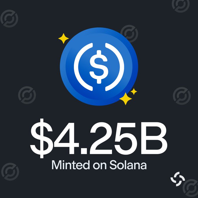 📊DỮ LIỆU: Circle đã tạo ra khoảng 4,25 tỷ $USDC trên Solana tuần trước.