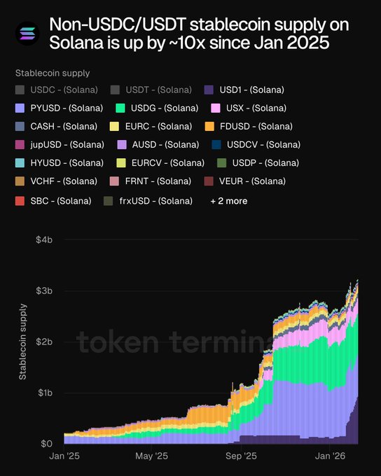 📊DỮ LIỆU: Theo Token Terminal , nguồn cung các stablecoin không phải USDC/ USDT trên Solana đã tăng khoảng 10 lần kể từ tháng 1 năm 2025.
