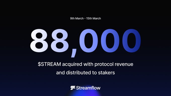 Tổng hợp số liệu thống kê giao thức hàng tuần 📊 → Doanh thu tạo ra: 19.600 USD → Mua lại STREAM: 620 USD → Phần thưởng đã phân phối cho người đặt cược: 88.000 STREAM