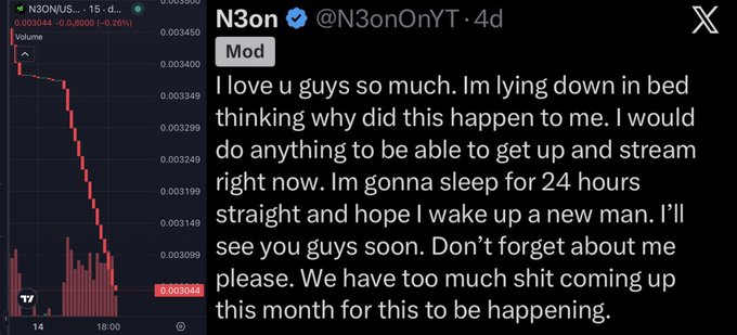 N3on hiện đã bước vào giai đoạn "nghỉ ngơi để lấy lại sức khỏe tinh thần" trong trò lừa đảo của mình. Và điều này xảy ra sau khi hắn ta đã hứa hẹn một cách công khai "lợi nhuận khổng lồ" cho những người mua đồng tiền của hắn. Bạn chưa đủ căm ghét những kẻ này. Và chắc chắn bạn chưa đủ căm ghét những người có tầm ảnh hưởng lớn đã quảng bá cho trò lừa đảo này và giờ lại im lặng.