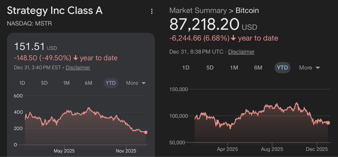 $MSTR đã hoạt động kém hơn Bitcoin với mức chênh lệch âm lên tới 43% trong năm nay.