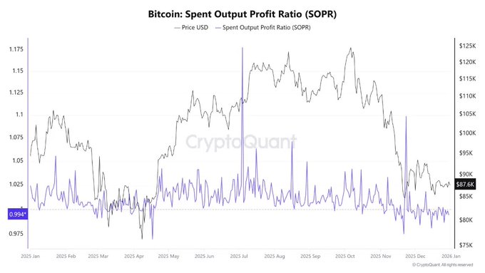 Tỷ lệ lợi nhuận đầu ra đã chi tiêu (SOPR) của Bitcoin duy trì ở mức dưới mức trung lập 1.0 cho đến cuối tháng 12, cho thấy lượng coin được chi tiêu gần bằng giá vốn. Khác với các sự kiện Sự từ bỏ trước đây, dữ liệu hiện tại cho thấy quá trình chốt lời diễn ra có trật tự và các nhà đầu tư đã hòa vốn.