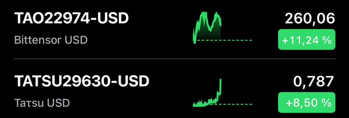 $TAO lên ➔ $TATSU theo dõi 📈 Đừng làm mờ các mạng con TAO. #SN84 @CryptoWizardd