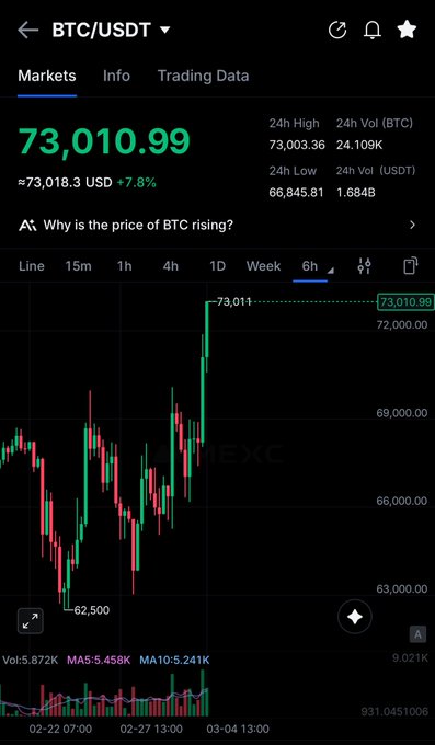 Bắt đầu thôi. Bitcoin 73.000 đô la # BTC