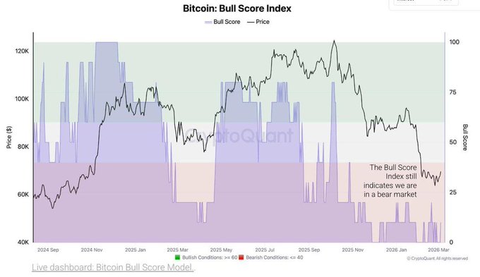 Mặc dù BTC đã vượt qua ngưỡng giá 62-70 nghìn đô la, nhưng theo CryptoQuant, chỉ có 10 trong số 100 chỉ báo trên Chỉ số Thị trường Tăng giá (Bull Market Index) được kích hoạt. Đây là một giá trị rất thấp - thị trường vẫn đang trong giai đoạn "giảm giá".