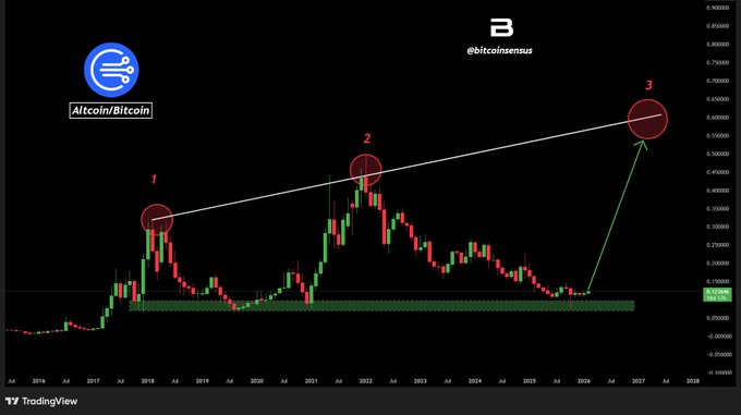 📊 Alt/ BTC đang giữ vững mức hỗ trợ lịch sử quan trọng